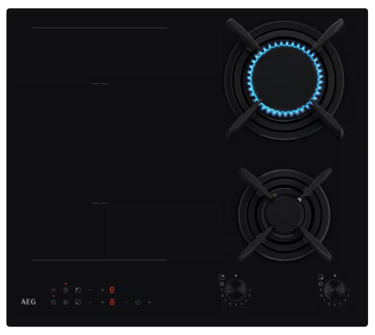 Aeg HDB64623NB Piano cottura in vetroceramica misto induzione/gas Serie 8000 & caratteristiche tecniche - Funzione Bridge - Assorbimento massimo regolabile da 1,5 kW a 3,6 kW Design - Estetica vetroceramica nera - Corone bruciatori Matt Black trattamento EasyClean, lavabili in lavastoviglie - Controllo elettronico Touch Control per le zone cottura induzione - Manopole StepPower: controllo preciso della fiamma su 9 livelli per le zone cottura a gas - 60 cm di larghezza - Zone cottura: 2 a induzione e 2 a gas - Griglie in ghisa per le zone cottura a gas - Maxi zona da 28 cm Funzioni - Power: funzione per potenza aggiuntiva - Stop&Go: funzione mantenimento in caldo per le zone cottura ad induzione - Blocco impostazioni di cottura - Sicurezza bambini (blocco accensione) - Spegnimento automatico di sicurezza - Contaminuti - Spie di calore residuo - Segnalatore acustico di fine cottura - Sicurezza Sicurgas per le zone cottura a gas Installazione - Installazione a filo-top e sopra-top - Sistema di installazione facilitata OptiFix