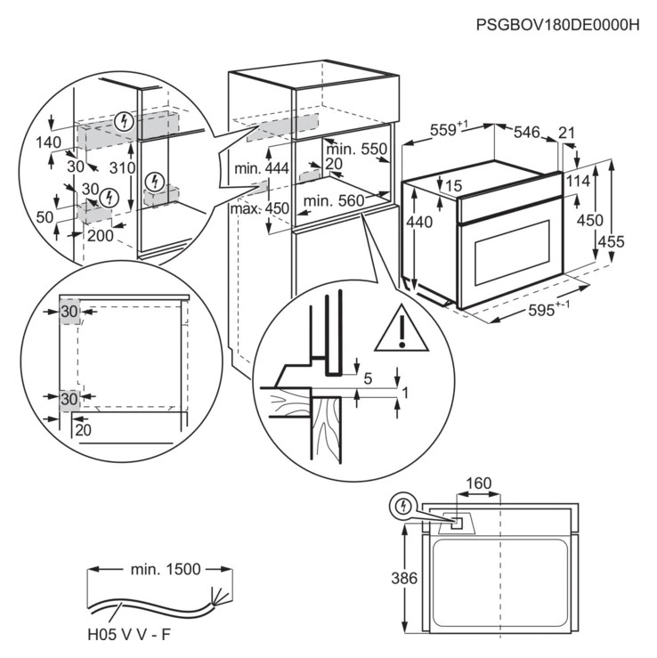 Dimensioni da incasso HxLxP( mm): 450x560x550.