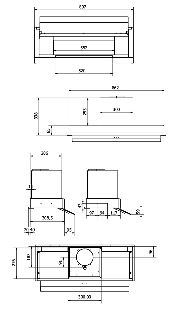 Benefit - Tecnologia Anticondensa Caratteristiche tecniche - Larghezza 90 cm - Classe di efficienza energetica A+ - Portata massima di aspirazione 680 m³/h - Installabile in modalità filtrante/aspirante - Installazione aspirante consigliata per il perfetto funzionamento del sistema anticondensa - Motore da 265 W - Pulsantiera elettronica - Regolazione motore a 3 velocità + 1 intensiva - 4 filtri metallici lavabili - Indicatore luminoso saturazione filtri - Illuminazione a barra LED dimmerabile