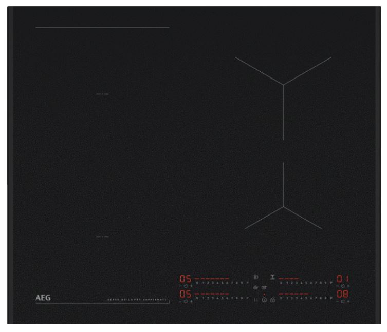 Aeg NII64B30AZ Piano cottura ad induzione SaphirMatt Serie 8000 Sense Boil&Fry con FlexiPower Management Benefit & caratteristiche tecniche - Funzione SenseFry® - Funzione SenseBoil - Funzione Bridge - Connessione piano-cappa Hob2Hood® - Assorbimento massimo regolabile da 1,5 kW a 7,35 kW - Indicatore digitale del livello di potenza impostata per tutte le zone di cottura Design - Estetica SaphirMatt con profili laterali con finitura Matt Black - 60 cm di larghezza - 4 zone di cottura estetica Windmill - Controllo elettronico SliderTouch - Potenza regolabile su 9 livelli Funzioni - Power: funzione per potenza aggiuntiva - Stop&Go: funzione mantenimento in caldo - Blocco impostazioni di cottura - Sicurezza bambini (blocco accensione) - Spegnimento automatico temporizzato - Timer di zona individuali - Contaminuti - CountUp Timer - Programmatore di fine cottura - Öko Timer con sfruttamento calore residuo - Spie di calore residuo a 3 livelli - Segnalatore acustico di fine cottura