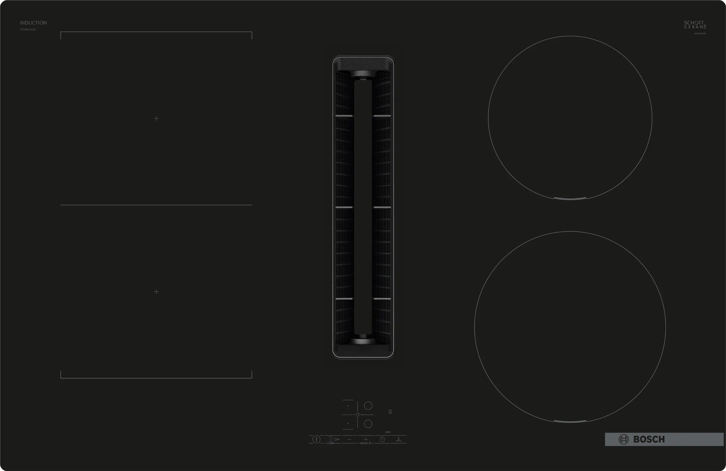 Bosch PVS801B16E Serie 4 Piano a induzione con cappa integrata 80 cm flush mount.