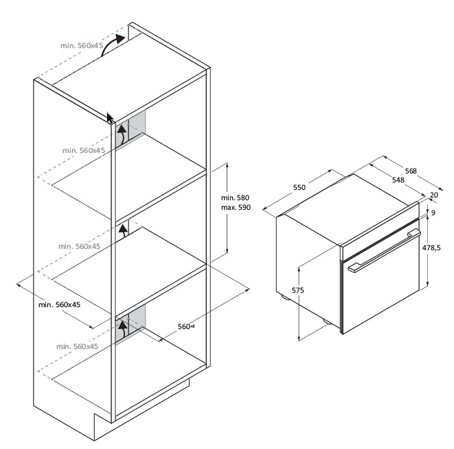 - Connettività Wi-Fi con App hOn - Classe Energetica A++ - Capacità 78 litri - Interfaccia con due manopole: Interfaccia LED Display - 11 funzioni: ECO, Statico, Multilivello, Supergrill, Pizza, Carne, Pesce, Verdure, Panificati all-in, AirFry, Pulizia H²O - Sistema di pulizia Aquactiva - Sistema di ventilazione radiale - Regolazione della temperatura da 30° a 300°C - Castelletto e guide telescopiche - 2 vetri porta Altre caratteristiche - Timer con interruzione automatica della cottura e segnale acustico di avviso - Illuminazione superiore - Sistema di pulizia della porta Click & Clean Accessori Inclusi - 1 Griglia Inox - 1 Leccarda (40mm) - Accessorio AirFry Informazioni Tecniche - Assorbimento elettrico massimo: 3,3 kW Finiture - Full Inox Dimensionamento AxLxP (mm) - Prodotto: 595 x 595 x 568 - Nicchia: 590 x 560 x 560 Codice prodotto Codice EAN 33704025 8059019092072