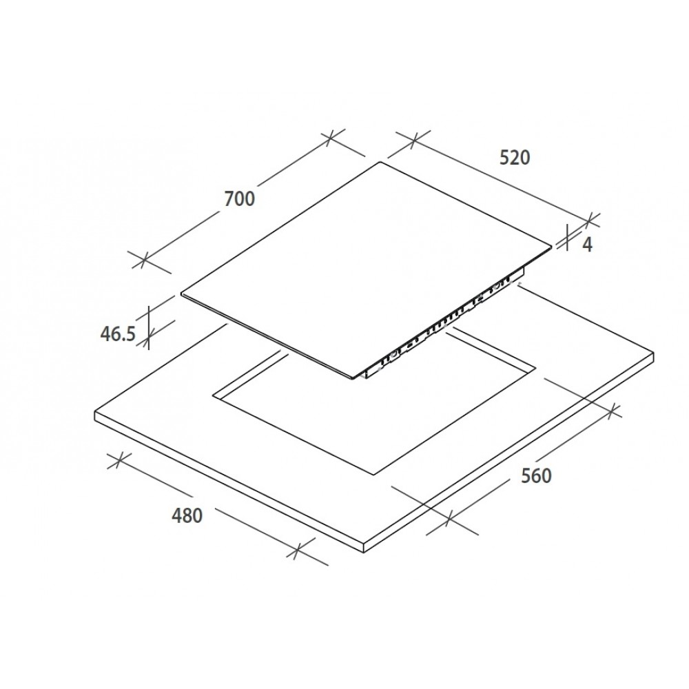 Dimensioni del vano per l'installazione (mm) 560x490.