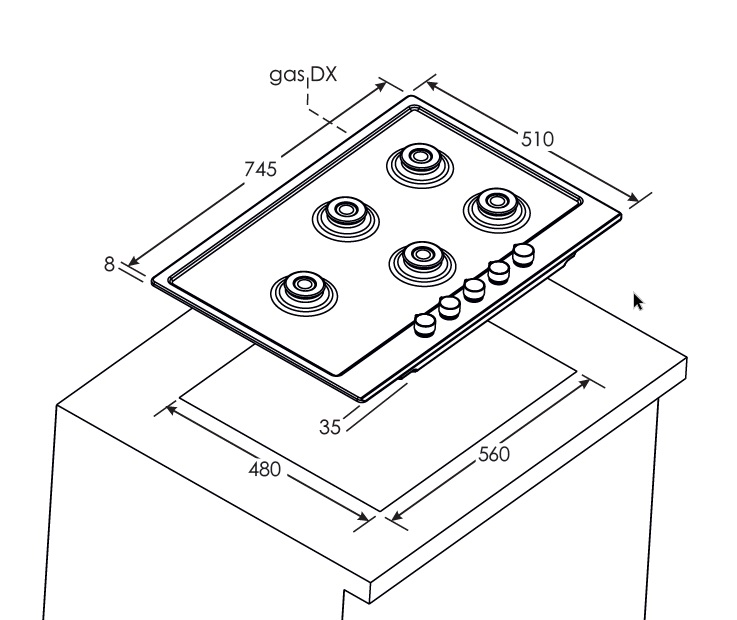 Dimensioni del vano per l'installazione (mm) 480X560.