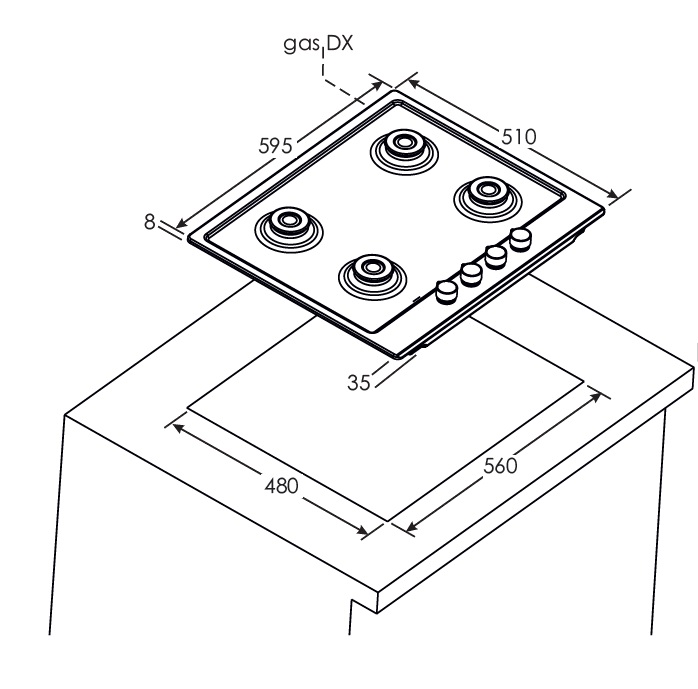 Dimensioni del vano per l'installazione (mm) 480X560.
