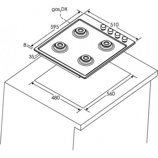 Dimensioni del vano per l'installazione (mm) 560x480x35.