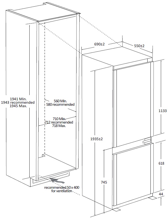 T Motore Inverter Display LED Vano frigorifero Capacità netta277 l Numero ripiani 4Numero balconcini 5 AdaptiveHumidityArea CassettoCrisper Porta uova Vano congelatore Capacità netta 101 l Numerocassetti3 Vaschettaghiaccio Dimensionamento AxLxP(mm) Prodotto: 1935 x 690 x 550 Nicchia: 1941 x 710 x 560 (raccomandato580)