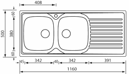 CM 010447DCSSX LAVELLO ACCIAIO INOX SIROS SATINATO 3" 116X50 2 VASCHE A DESTRA.