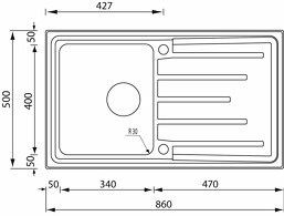 CM 015103RCSSP LAVELLO ACCIAIO INOX BRANDO SATINATO 3" 86X50 1 VASCA REVERSIBILE.