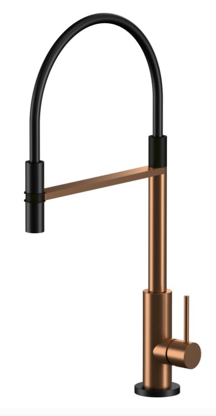 Miscelatore canna girevole con mollettone, doccia e particolari neri Black - Copper Bronze