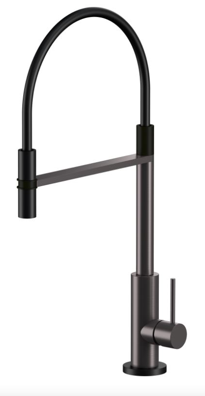 Miscelatore canna girevole con mollettone, doccia e particolari neri Black - Gun Metal