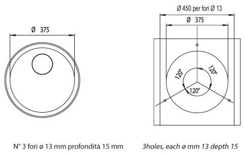 Linea Cinzia Categoria Lavello rotondo Tipologia incasso Sottotop Tipologia Senza gocciolatoio Misura incasso Dima cm cm Larghezza 38 cm Profondità 38 cm Profondità vasche 16 cm Finitura Inox satinato
