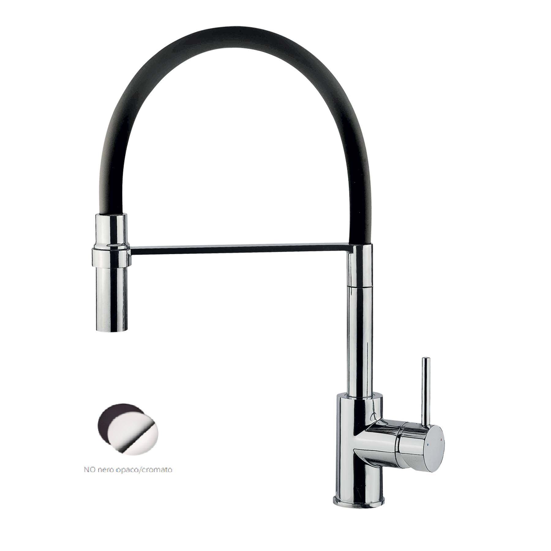 NERO OPACO · Miscelatore monocomando in ottone · Bocca girevole 360° · Doccia estraibile monogetto in ottone · H 44 cm (16,4 cm dalla bocca)