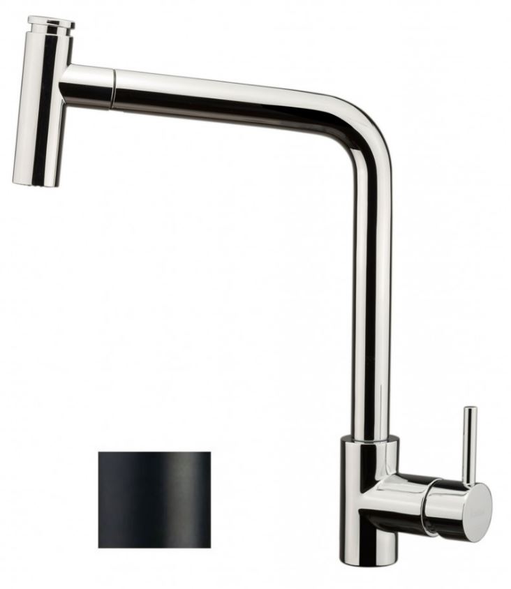IL MISCELATORE E' NERO OPACO E NON CROMO Monocomando Bocca girevole 360° Doccetta estraibile a 2 getti in ABS Cartuccia Sedal diametro 35 S/D Energy Saving Areatore Neoperl caché 9l/m Nero opaco (doccetta cromata)