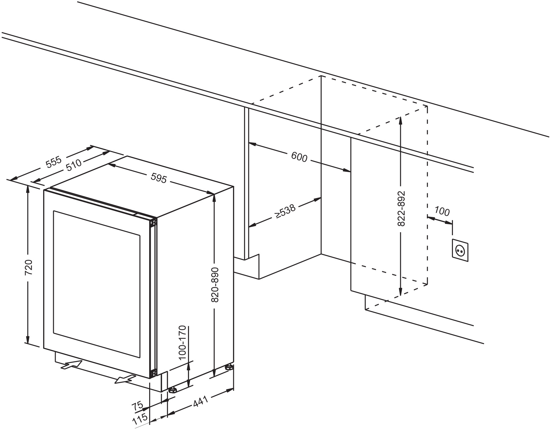 Cromberg HCV68UD cantina vino, vetro nero cerniera dx