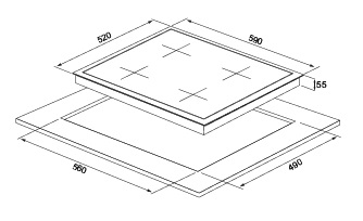 Cromberg HIK604B Piano cottura ad induzione da 60 cm nero Potenza massima 6400W Regolatore di potenza Tensione di alimentazione 220-240V~ 50/60Hz Zone cottura 4 Zona Boost 180 mm / 1800 - 2000W Zona 2: 160 mm / 1400W Zona 3: 180 mm / 1800W Zona 4: 160 mm / 1400W Comandi Touch Finitura vetro nero Blocco sicurezza bambini, Boost, Timer Misure piano 59x52 cm Misure foro incasso 56x49 cm