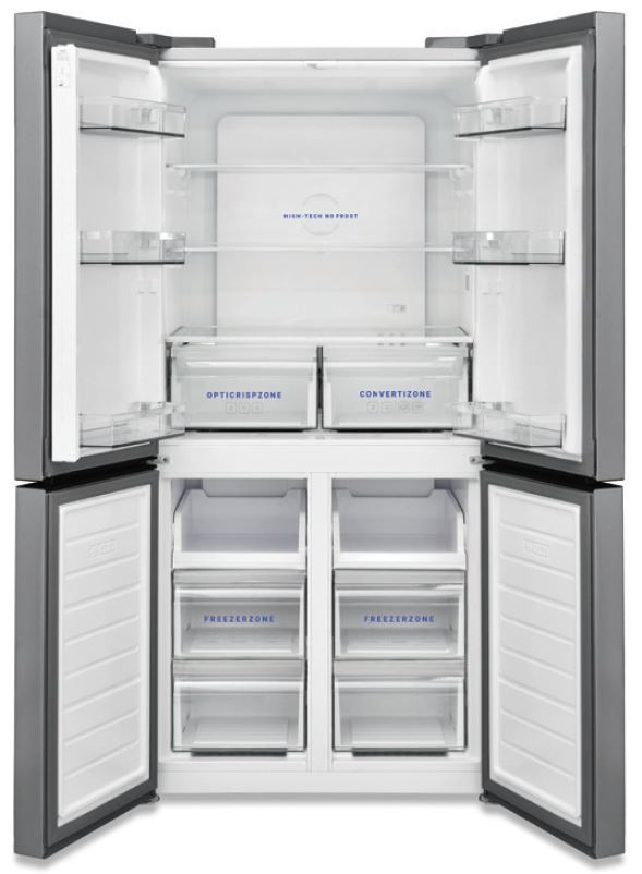 Frigorifero 4 porte · Finitura pet inox (premium) superficie laminata effetto acciaio inossidabile.