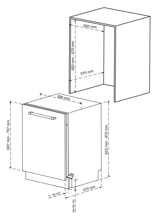 Capacità 13 coperti 6 Programmi Classe Energetica E 49 dBA 2 Cestelli Sistema di asciugatura attivo Dimensioni 60 cm Funzioni