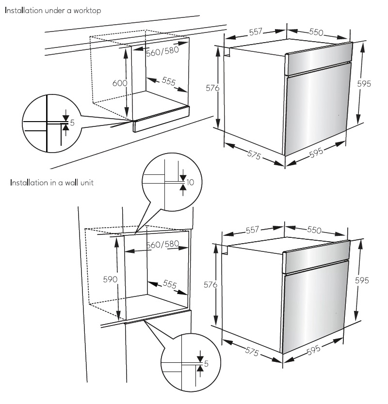 Forno - 78L · Muffola XXL 78 litri · Intervallo di temperatura 50-270°C · Design Full Glass + inox · Timer digital touch con display · 9 funzioni: -Luce del forno / Scongelamento / Ventola+resistenza circolare / Resistenza superiore e inferiore / Resistenza superiore e inferiore+Ventola / Pizza / Grill / Doppio Grill / Doppio Grill+Ventola · Easy to Clean: smalto facile da pulire · Detach & Clean: Vetro interno rimovibile · 2 leccarde (1 standard + 1 profonda) + 1 griglia cromata · Dimensioni - LxPxA (mm) 595x575x595
