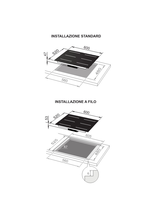 Vano incasso 56*48 cm per sostituzione dei piani a gas.