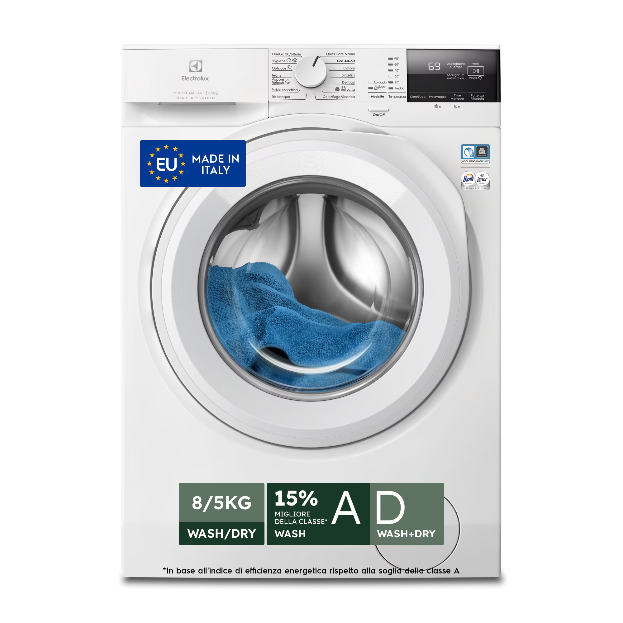 Classe di efficienza energetica ciclo lavaggio/asciugatura E20 D.