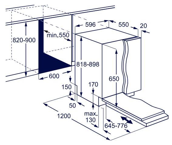 Dimensioni (mm): Altezza (min-max) x Largezza x Profondità: 820-900x600x550