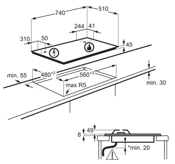 Electrolux KGG75362K Piano Gas Serie 600 StepPower Gas on Glass Benefit  Piano Gas StepPower Gas on Glass  Manopole StepPower: controllo preciso della fiamma su nove livelli  Bruciatori SpeedBurner ad alta efficienza +20%  Bruciatore Wok multicorona Design  Estetica cristallo temperato nero e manopole finitura nero/inox  Larghezza 75 cm  5 fuochi gas  Griglie in ghisa  Accensione integrata nella manopola Caratteristiche tecniche  Sicurezza Sicurgas Installazione  Possibilità di installazione sopra ad una lavastoviglie (con optional M3DKH100)  Possibilità di installazione sopra ad un sottotavolo (con optional M3DKH100)