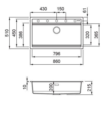 Profondità vasca 200 mm.