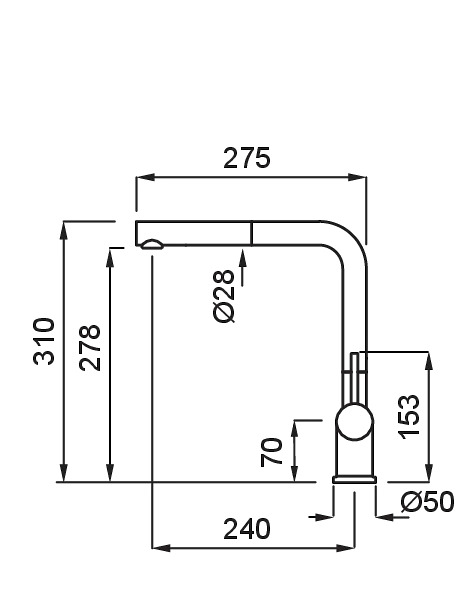 Miscelatore monocomando con canna girevole e doccetta estraibile.