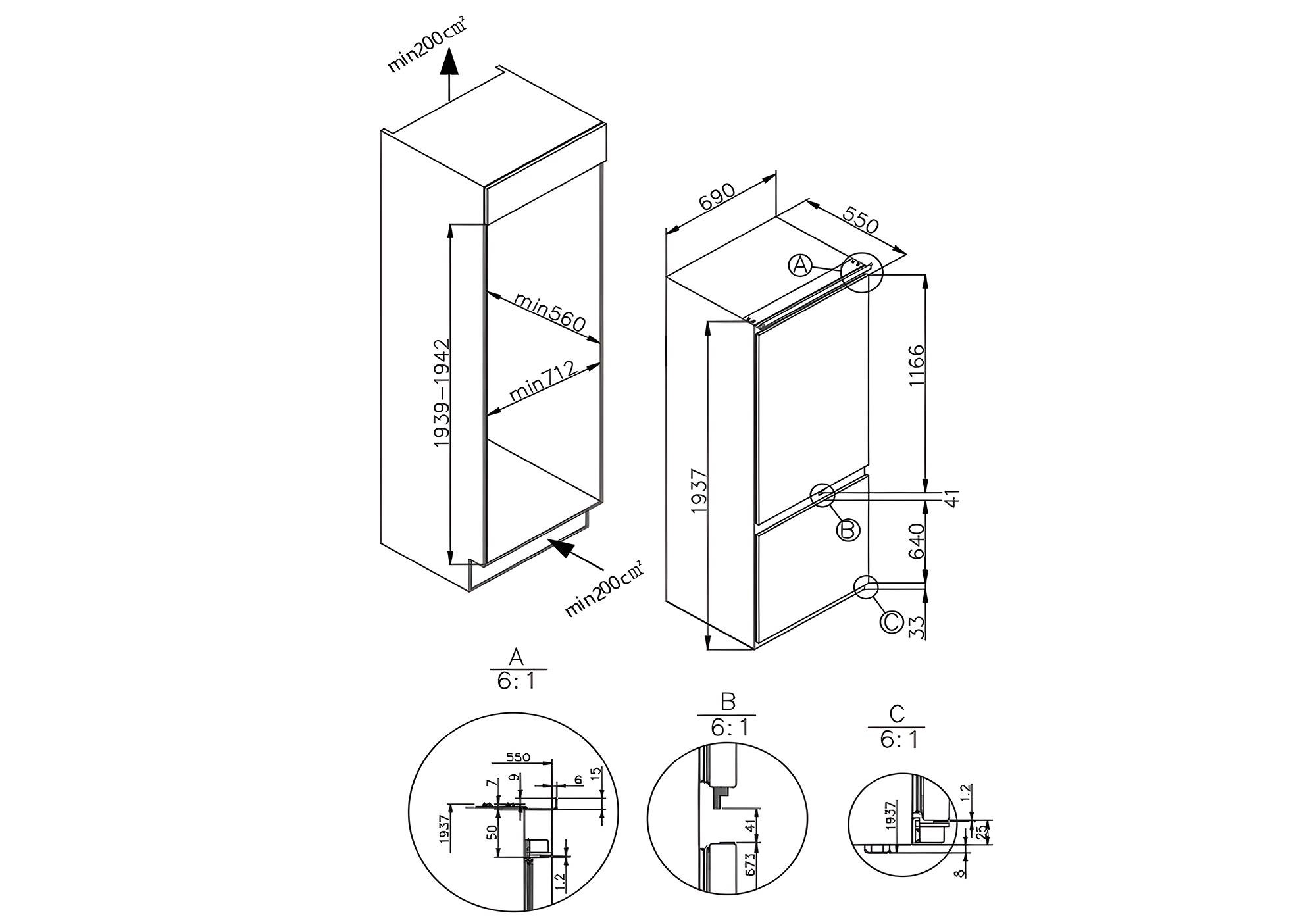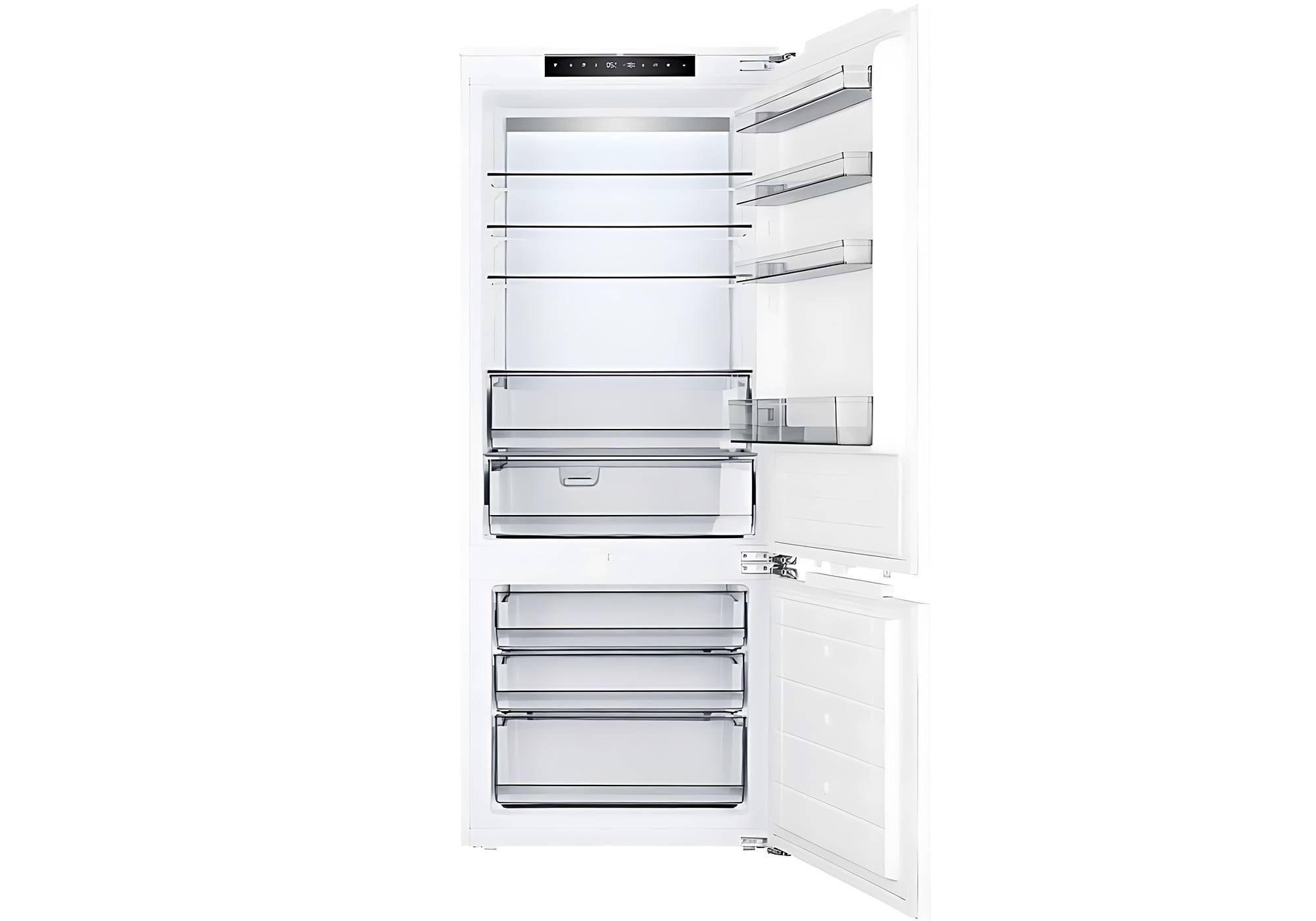 Codice prodotto 2040030 Tipologia Frigorifero combinato da incasso Tipo di controllo Interfaccia LED con comandi touch Illuminazione Retroilluminazione interna con pannello LED Porta Reversibile - Cerniere standard a destra Capacità lorda totale 341 lt Capacità netta frigorifero 257 lt Capacità netta congelatore 84 lt Alimentazione 220 - 240 V