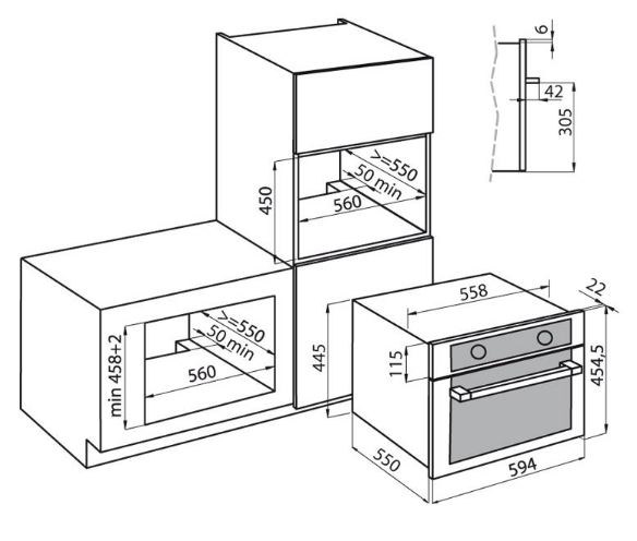 Forno Stripe Finitura muffola Acciaio Inox Numero vetri porta 2 vetri Potenze microonde 1000 W (6 livelli potenza) + Grill 1000 W Programmazione Timer di fine cottura Raffredamento Ventilazione Tangenziale Sicurezza Blocco porta Tipo di forno Combinato microonde Tipo comandi Manopole Volume 34Lt