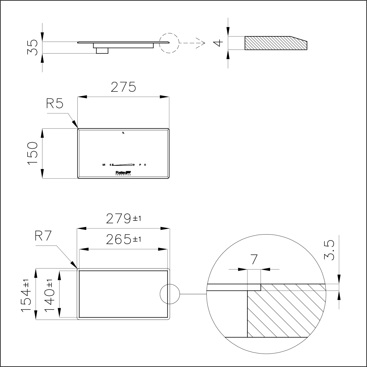 Bordo bisellato - per installazione a filo piano o per incasso sopratop.
