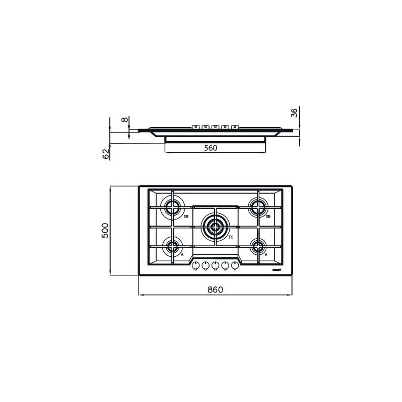 Dimensioni: 860x500 mm.