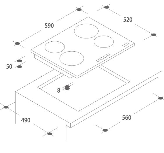 Tipo di piano cottura Vetroceramica Zone cottura 4 CARATTERISTICHE TECNICHE Tensione (V) 220-240 Timer elettronico Si PROGRAMMI E FUNZIONI Tipologia 1° elemento riscaldante High Light Tipologia 2° elemento riscaldante High Light Tipologia 3° elemento riscaldante High Light Tipologia 4° elemento riscaldante High Light Colore Nero Materiale del piano Vetroceramica Dispositivi di regolazione comandi Controlli touch Colore manopola Nickel Satinato Dimensioni del vano per l'installazione (mm) 560x490x46.