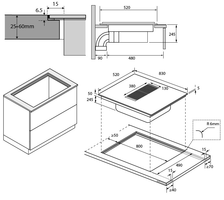 Hoover HIH8ICE Piano cottura induzione con cappa integrata aspirante Hoover HIH8ICE Piano cottura induzione con cappa integrata aspirante