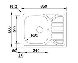VASCA A SINISTRA Misure esterne 650x500mm misure vasca 340x400mm profondità vasca 160mm Base 450mm