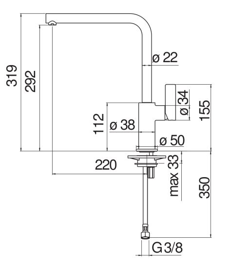 Finitura Inox 316L Monocomando in acciaio inox Limitatore di portata con freno al 50% Bocca girevole 360° Aeratore anticalcare M 18 x 1 Flessibili inox ø 3/8