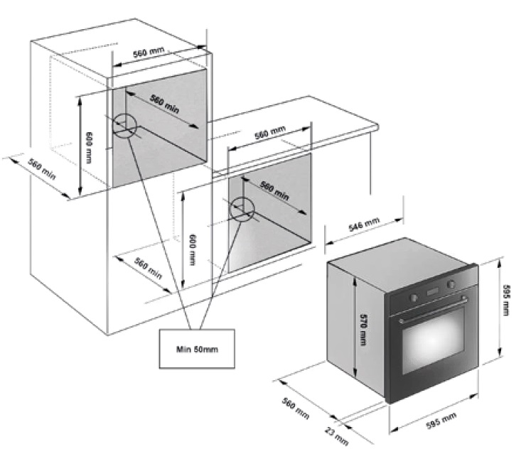 Forno LINEA SHADE 60 x 60 7 Funzioni 3 manopole Timer meccanico Porta con doppio vetro 1 Ventola Classe A