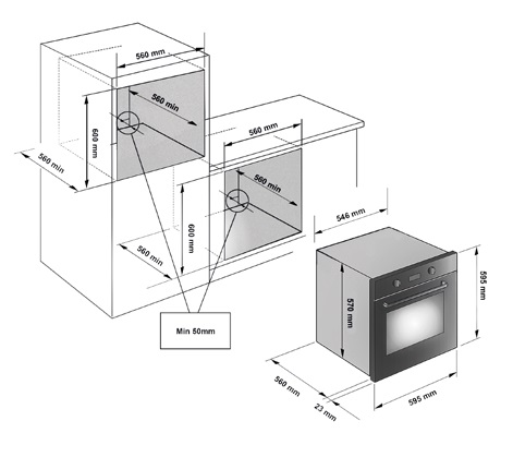 Forno LINEA CLASSIC 60 x 60 9 Funzioni 2 Manopole, Timer digitale Guide telescopiche Porta con doppio vetro Chiusura soft close 1 Ventola