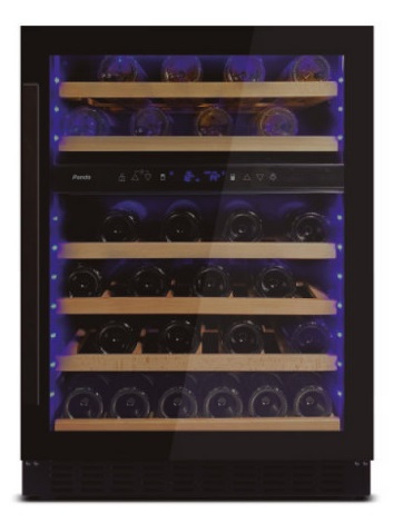 N° di bottiglie (tipo bordolese da 0,75 litri): 46 Misure (L x l x h): 595x825x581 mm Temperatura : 2 Temperature operativa: +5ºC a +20ºC Capacità (litri): 133 Consumo energetico: 155 KwH/ano Livello acustico: 40 db N° di vetri sulla porta: 3