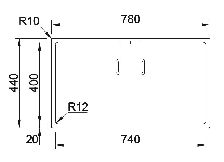 misure esterne 780x440mm misure vasca 740x400mm profondità vasca 200mm base 900mm