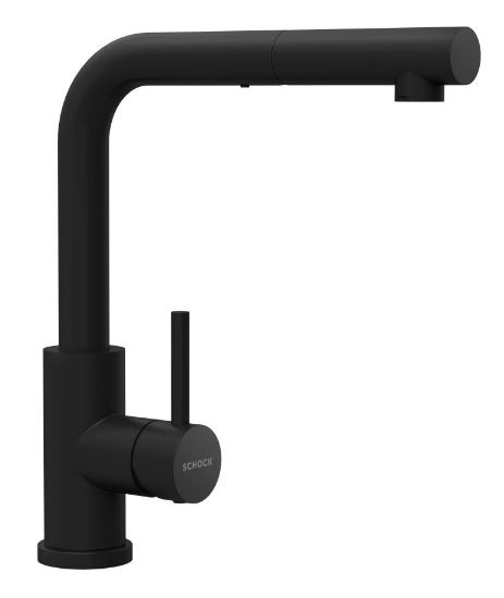 SCHOCK Saving apertura 90°  Rotazione canna 360°  Flex allacciamento 35 cm  Cartuccia ø 35 mm KANTUS CON DOCCIA NERO OPACO