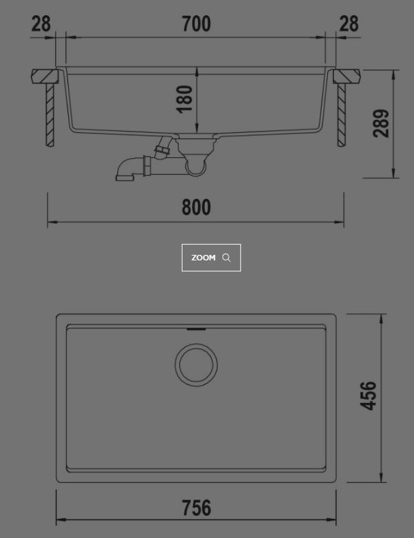 LAVELLO SERIE LAHTI LAVELLO MONOVASCA SOPRATOP NERO · Lavello cm 75,6x45,6 · Vasca cm 70x40x18 · Base cm 80 · Foro incasso cm 74,2x44,2