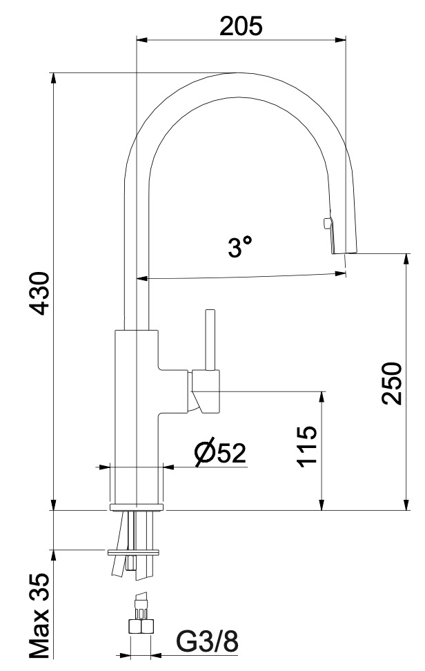 Miscelatore canna alta con doccetta estraibile a scomparsa.