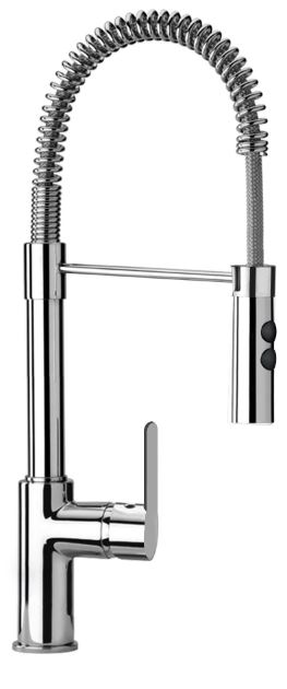 Miscelatore Cromato monocomando bocca a molla con asta orientabile.