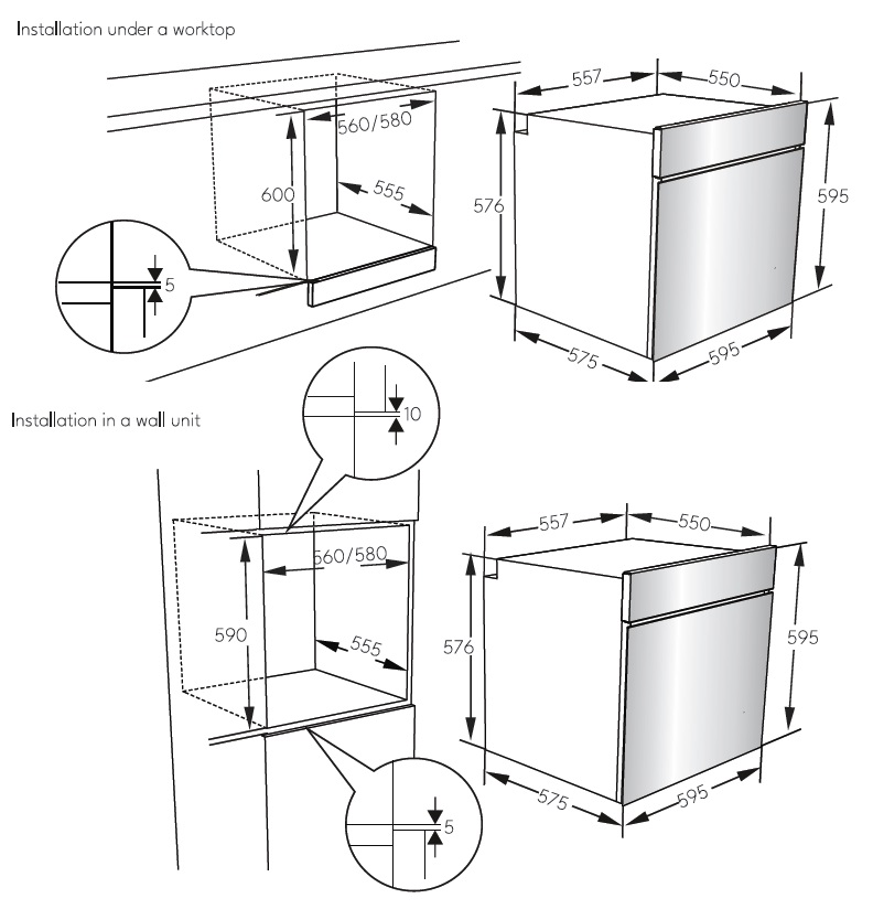 · Muffola XL 73 litri · Intervallo di temperatura 50-270°C · Design Full Glass/Total Black · Timer meccanico · 9 funzioni: Luce del forno / Scongelamento / Ventola+resistenza circolare / Resistenza superiore e inferiore / Resistenza superiore e inferiore + Ventola / Pizza / Grill / Doppio Grill / Doppio Grill + Ventola · Easy to Clean: Smalto facile da pulire · 5 livelli di ripiani · Detach & Clean: Vetro interno rimovibile · 2 leccarde (1 standard + 1 profonda) + 1 griglia cromata · Dimensioni - LxPxA (mm) 595x575x595