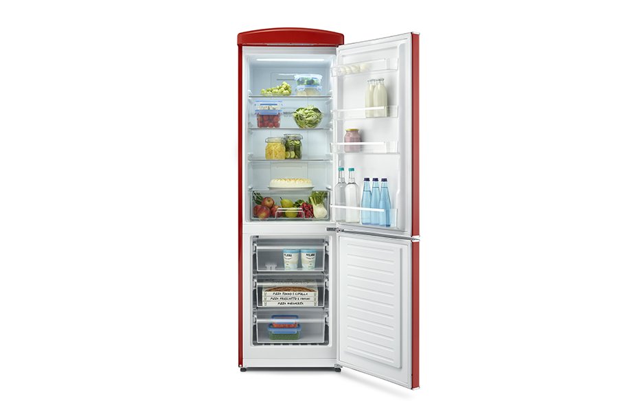 Severin RKG 8997 Frigorifero Retrò combinato Total No-Frost Multi-airFlow  Rosso apertura porta a destra.