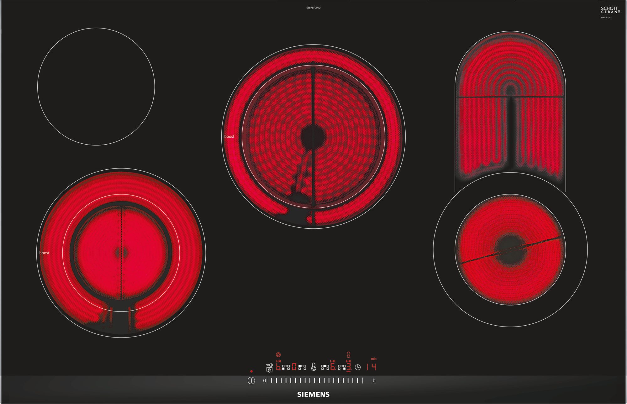 Siemens ET875FCP1D iQ300 Piano cottura elettrico radiante in vetroceramica di 80 cm di larghezza.