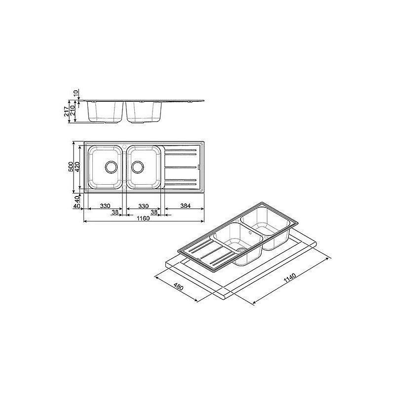 Dimensioni vasca sinistra (LxPxA): 330 x 420x 210 mm.