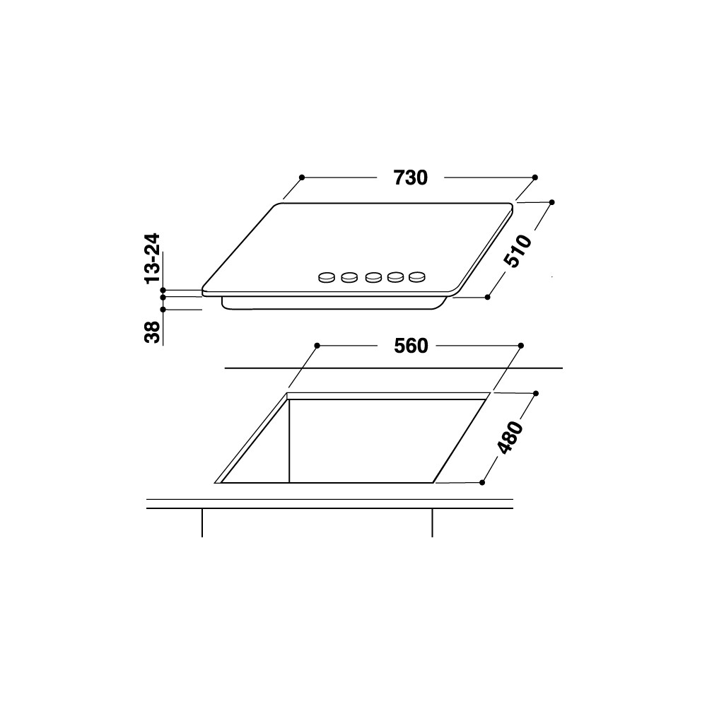 Larghezza del prodotto 730.